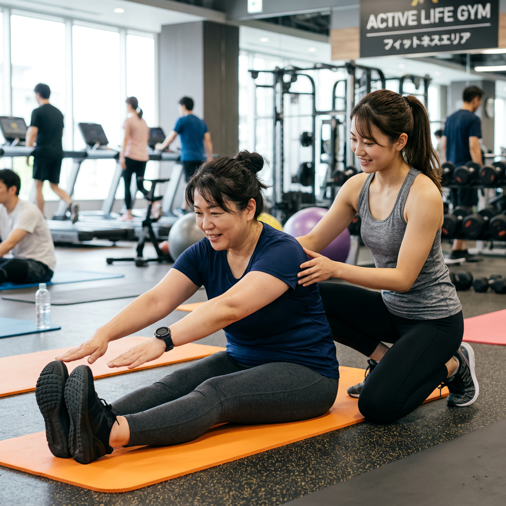 エクササイズの事例として、更年期向けの軽いストレッチを提案すると、信頼が生まれます。